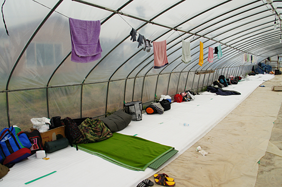 노동자들은 맹꽁이 울음소리 함께 밤 11시 잠이 들고, 비닐하우스로 스며드는 아침햇살과 함께 새벽 6시 눈을 뜬다. 새벽이면 쌀쌀하지만 공장으로 돌아가기 위해서는 감당해야만 하는 일이다.