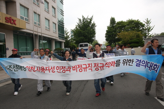 "STX 비정규직 해고자 7명의 투쟁을 조선소 하청노동자들이 지켜보고 있다"