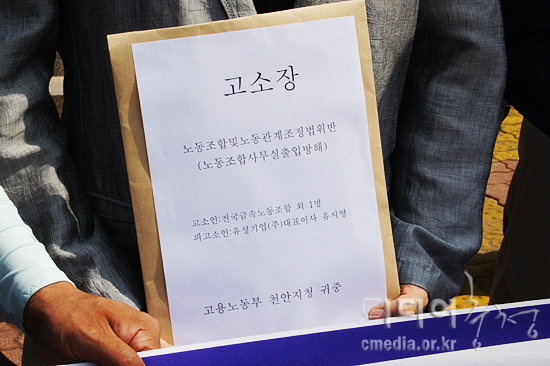 ▲ 금속노조는 '노동조합 및 노동관계조정법위반(노동조합사무실출입방해)' 고소장을 제출했다. |