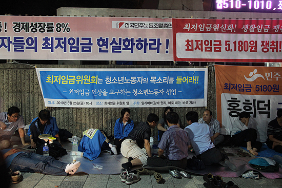 ▲ 2010년 최저임금위 앞 노숙농성 [출처: 참세상 자료사진] |