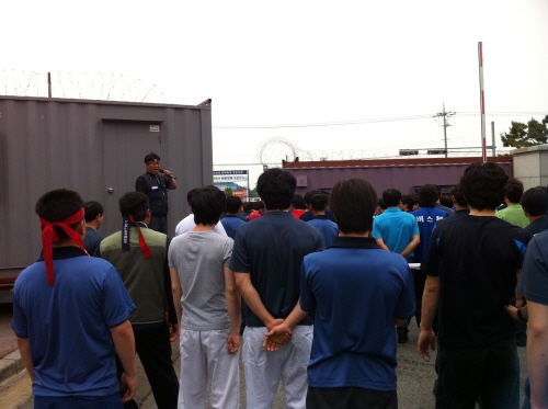 현대차 전주공장은 지난 7일 비정규직지회 징계자 출입을 막았고 다음날 정문에 컨테이너를 설치해 징계자 출입을 통제하고 있다. 사측 관리자와 영업직, 본사직원으로 구성된 20~30명이 각 출입문과 식당입구를 지키고 공장을 활보하는 등 험난한 분위기를 연출해 징계자들은 전주공장위원회 사무실에서 3일째 철야농성을 이어가고 있다.