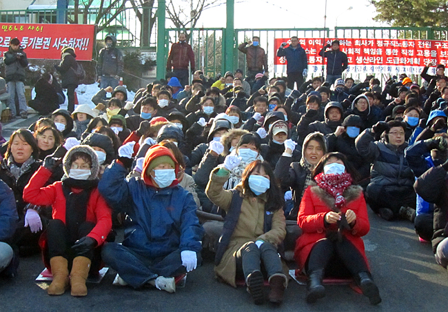 ▲ 1월20일 경기 파주 시그네틱스 공장 앞에서 '2011년 투쟁사업장 승리를 위한 경기지부 투쟁선포식'이 열리고 있다. [출처: 금속노조 박향주] |