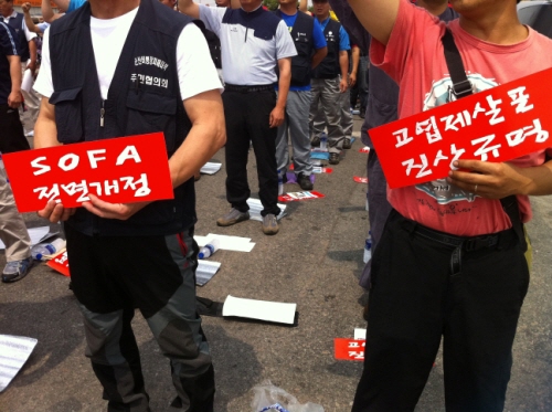 파업 190일 차를 맞이하는 전북고속 노동자들도 이날 집회에 참가해 "악질자본의 횡포와 탄압 속에 노동자 신분으로 살아가는 것도 벅찬데, 미군범죄에 침묵하는 힘없는 정부가 지배하는 땅에서 산다고 생각하니 가슴이 답답하다"고 전하며 "국민의 생명을 위협하고, 환경처리비용까지 우리에게 부담시키려 하는 주한미군 철수를 위해 함께 노력하자"고 결의를 밝혔다. (기사제휴=참소리)