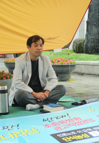 이강택 전국언론노동조합(언론노조) 위원장이 수신료 인상 재논의와 ‘조중동 방송의 직접영업을 막는 미디어렙(방송광고판매대행사) 법안’ 제정을 촉구하며 23일 단식투쟁에 돌입했다.