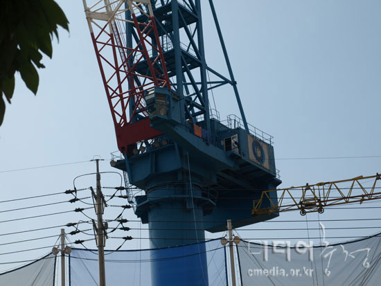 관련해 회사는 추락 등 안전사고에 대비한 시설이라고 밝혔고 노동자들은 강제진압 수순이거나 크레인의 김진숙 지도위원과 노동자들을 자극하는 행동이라고 지적, 양측의 주장이 팽팽히 맞서고 있다.