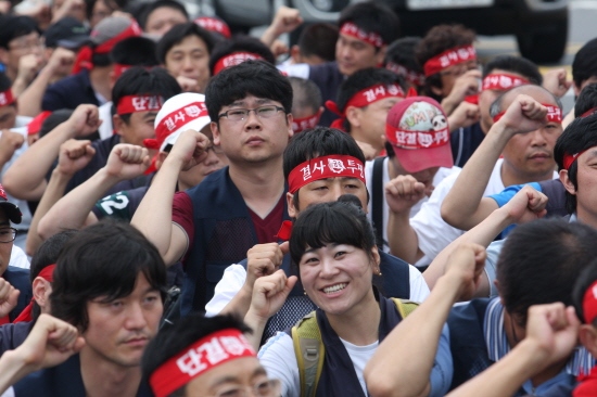 이어 "다음주 희망버스 타고 비정규직철폐 투쟁에 나설 것"이라며 "전국 비정규직 사업장 돌면서 자본가들의 가슴을 서늘하게 만들어야 한다. 학생 시민들과 함께 하는 사회적 투쟁, 비정규직 철폐투쟁을 만들어가자"고 호소했다.