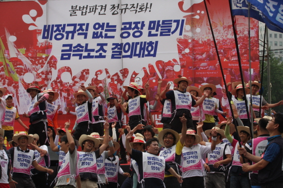 이어 "불법파견이란 장막 아래 현대차에 의해서 비정규직 노동자의 임금이 결정되고 비정규직 노동자에 대한 징계가 결정됐다. 게다가 하청업체 뿐만 아니라 유성기업 등 부품사의 노사관계까지 직접 관리해왔다"며 "사내하청노동자의 '진짜 사장' 현대차 정몽구 회장은 모든 불법적인 행동을 중단하고 사내하청노동자들을 즉각 정규직으로 전환하라"고 촉구했다.