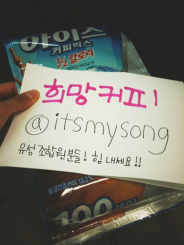 ▲ 트위터에서 시작한 '희망커피'운동. 이후 여러가지 물품으로 이어졌다. [출처: 트위터 @itsmysong] |