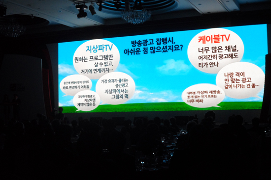 이날 TV조선도 동아일보 종편과 크게 다르지 않았다. TV조선 신입사원들은 임원진과 함께 무대에 올라 광고주들에게 90도로 고개 숙여 인사했다. 이 때 TV조선 채널설명회 사회자가 “TV조선 선택을 후회하지 않게 하겠다는 각오의 인사”라고 말했다.