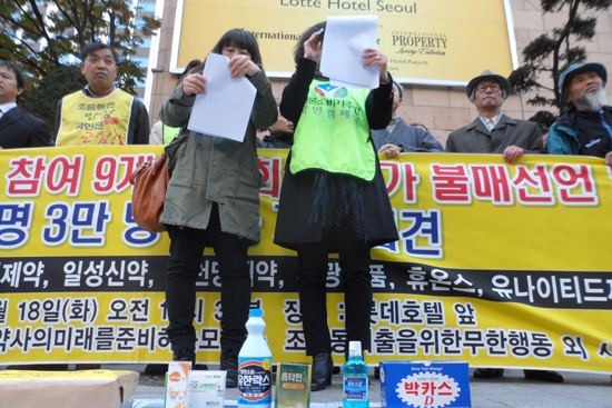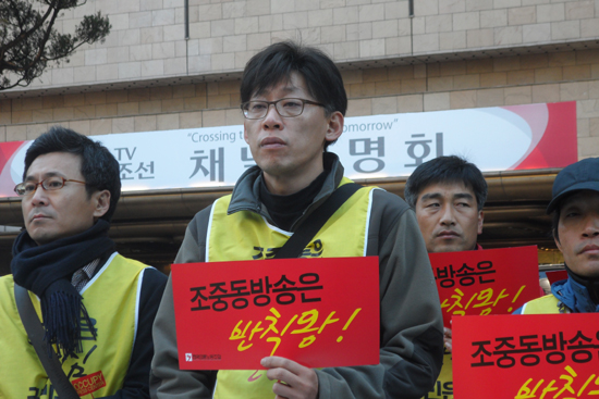 언론노조는 이날 11시에 TV조선 설명회가 열리는 롯데호텔 앞에서 ‘광고직거래 즉각 중단’을 촉구하는 기자회견을 열었다.