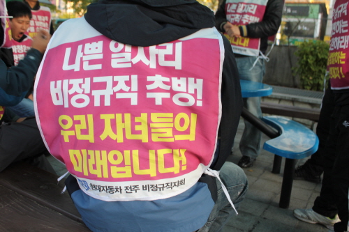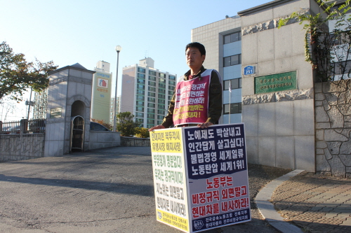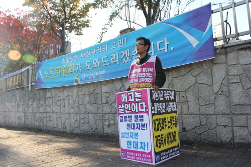 이런 상황에서 현대차 전주비정규직지회는 부당징계 판정이 나올때까지 노동부 앞에서 1인시위를 할 예정이다.