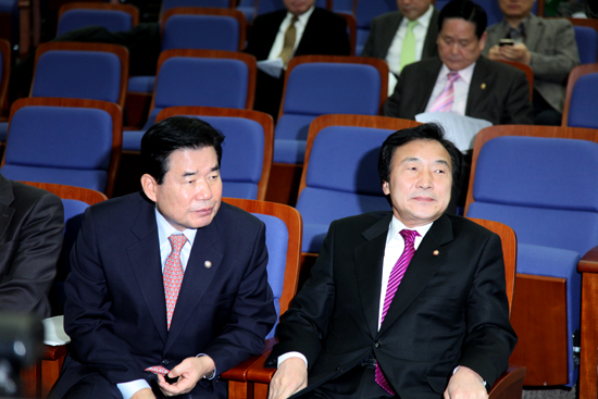 ▲ 14일 오전 민주당 의총에서 김진표 원내대표와 손학규 대표 |