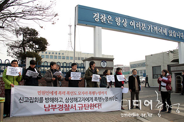 이들은 이어 “지금까지 남부경찰서와 영통구청이 행한 일련의 행동들은 삼성의 눈치 보기 아니고서는 설명이 되지 않는다”며 “만인은 법 앞에 평등하고 법을 집행하는 경찰과 공무원은 국민 앞에 공정했는지 묻고 싶다”고 꼬집었다.