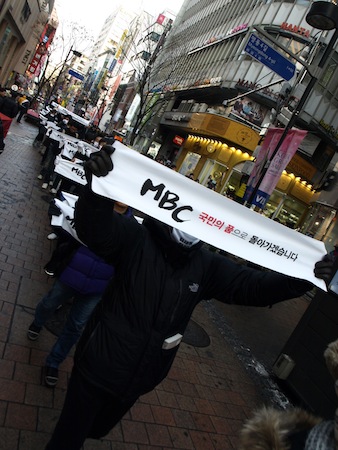 3일 오후 3시30분, 엠비씨본부 조합원 400여 명과 시민들은 명동예술극장 앞에 모여 ‘공영방송 MBC’라 쓰인 영정을 만들어 노제를 하고 영정을 앞세워 명동 일대를 행진했다. 또 이들은 영정을 땅에 묻고 국민의 방송으로 거듭 태어 나는 퍼포먼스를 진행 했다.