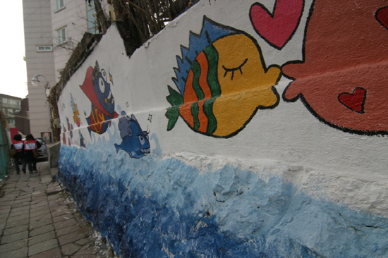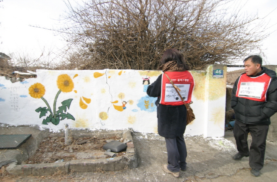 그리고 다시 겨울입니다. 용산 참사 3주기에 맞서 2012년 1월 15일 강제철거지역의 방문이 있었습니다. 상도동에는 새롭게 그려진 벽화들이 무너진 건물사이로 화사하게 피어나 있습니다. 누군가의 관심과 배려는 주민들의 지친 심신을 다독여 줍니다.