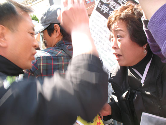 ▲ 유가족에게 항의하는 김석기 후보 지지자 |