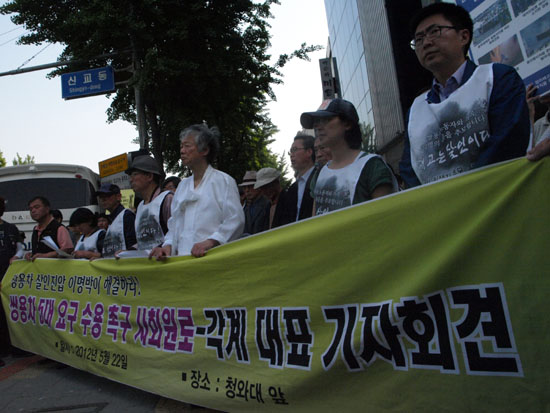 참가자들은 “쌍용자동차 문제 해결을 위해 정치계와 종교계 등 사회 각계각층의 관심이 모아지고 있는데 청와대만이 묵묵부답이다. 책임있는 답변을 꼭 들어야겠다”며 기자회견을 마치지 않은 채 새마을금고 앞에서 약 2시간 가량을 기다렸지만 끝내 청와대 측의 답변은 듣지 못했다.