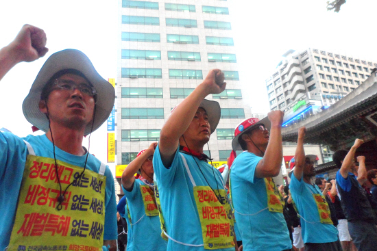 양동규 금속노조 부위원장은 노동자들의 연대를 강조하면서 8월 총파업의 선봉이 되어줄 것을 당부했다. 그는 “28일 금속노조 15만이 총파업을 다시 선포하고 생산의 주인이 노동자라는 것을 보여주자”고 말했다. 그는 이어 “금속노조의 총파업은 15만의 파업으로 끝나지 않고 8월 민주노총의 총파업으로 진격하는 힘이 될 것”이라고 주장했다.