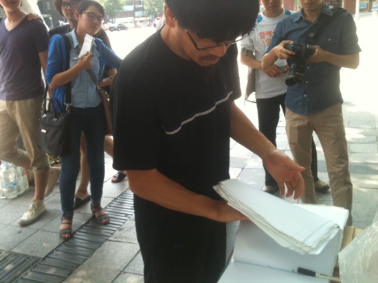 대한문 분향소에서 22명의 쌍용차 희생자에 대한 분향을 마친 한상균 전 지부장은 이어 쌍용차 옥쇄파업을 집중 조명한 공지영 작가의 최신작 ‘의자놀이’ 출판 기념회에 참석했다.
