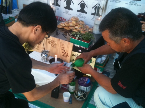 투쟁을 이어왔던 쌍용차 노동자들도 분향소에서 한상균 전 지부장과의 애달픈 마음을 나눴다.
