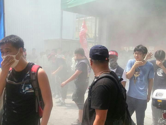금속노조 현대자동차 비정규직지회는 ‘모든 사내하청 정규직 전환’을 요구하며 16일 주야 전면파업을 벌였습니다. 비정규직이 일하는 공정에 현대차 관리자들이 투입돼 불법으로 라인을 돌리고, 수 백 명이 넘는 회사의 관리자들과 경비대가 1공장에 모여 소화기를 뿌리며 비정규직 노동자들의 파업을 봉쇄했습니다.