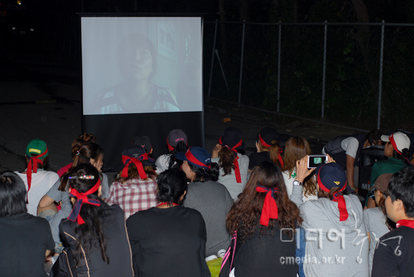 ▲ 밤 문화제 때 '생활교육공동체 공룡'에서 제작한 영상 상영 중 |