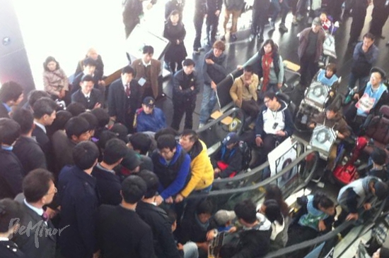 ▲ 5시 30분 현재 송도 컨벤시아 에스컬레이터 상황 [출처: ⓒ전국장애인차별철폐연대] |