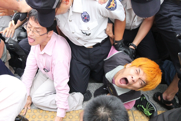 ▲ 지난 8월, 농성을 시작하는 장애인들을 경찰이 막고있다 [출처: 비마이너] |