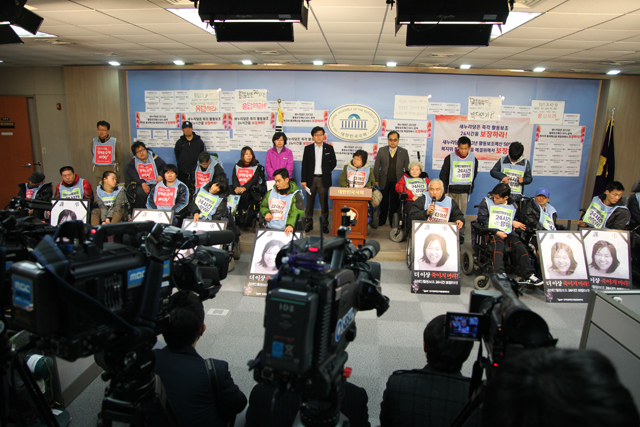 기자회견에 참가한 김미희 통합진보당 의원은 “새누리당도 상임위 장애인 활동보조 예산 대폭 증액 주장에 암묵적인 동조를 했는데도 정작 예결특위에서 전혀 심의가 안된다”며 “대선을 앞두고 많은 공약과 정책을 남발하면서도 당장 내년 예산을 세우지 않는다면 새누리당의 어떤 공약이 실현되겠는가. 예결특위에서 그 예산을 세워야만 대선 약속을 지킬 수 있다”고 촉구했다.