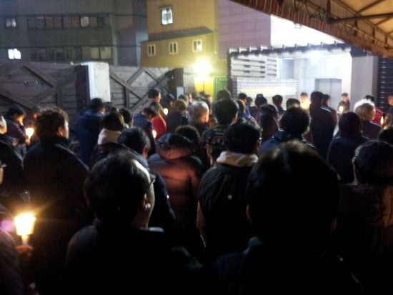 한편, 30일 저녁 7시 화성지회에서 입관식을 진행할 것이라는 소식에 7시 화성공장 앞 촛불추모제에 참가하려던 사람들이 빈소로 모여들었다. 마찰이 예상되자 화성지회는 입관식을 취소했다. 이들은 장례식장 앞에서 저녁 8시 30분경부터 한 시간가량 추모 집회를 진행했다.