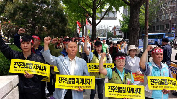 노조는 “지금까지 홍 도지사는 진주의료원을 정상화하기 위한 어떤 방안도 제시하지 않았고, 직접 대화 요구를 외면했다”며 “협상기간으로 정한 마지막 날인 오늘, 우리는 ‘조속한 진주의료원 정상화방안을 마련하겠다’는 홍준표 도지사의 결단을 촉구한다”고 밝혔다.