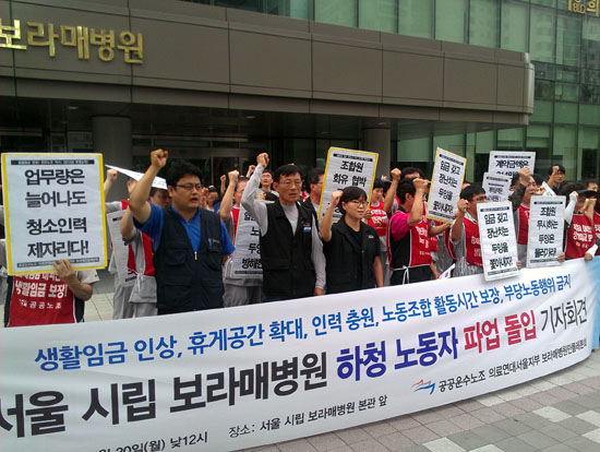한편 노조는 기자회견을 통해 △하청업체는 생활임금 인상, 정년연장, 유급휴일 보장, 노조활동 보장 등 노동조합의 요구를 즉각 수용할 것 △박원순 서울시장과 윤강섭 보라매병원장은 보라매병원 하청노동자들의 처우를 개선하고 문제해결을 위해 적극 나설 것 등을 요구했다.