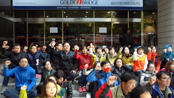 골든브릿지투자증권지부는 30일 오후 3시, 회사 앞에서 집회를 개최할 예정이었으나 건물주인 노마즈 등이 이를 막아서면서 충돌이 발생했다. 집회의 자유를 요구하는 노조와 경찰 간의 충돌도 잇따랐다.