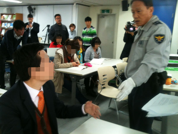 ▲ 주최측의 수차례에 걸친 퇴실 요구를 묵살한 S병원장과 병원 관계자들이 경찰의 퇴실 요구도 거부하고 있다. |