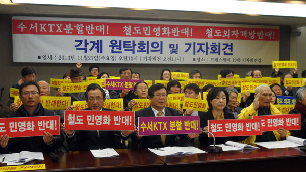 한편 참가자들은 ‘각계 원탁회의 선언문’을 발표하고 “우리는 박근혜 정부에게 어떠한 사회적 합의도 없이 강행 처리하는 수서발 KTX주식회사 설립, 철도 민영화의 즉각 중단을 엄중히 촉구한다”고 밝혔다.