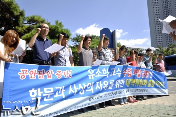 임순광 ‘유소희 교수 수업 사찰 규탄 및 학문과 사상의 자유 대책위원회(학문자유대책위)’ 집행위원장은 “전체적으로 공안탄압이 심해지고 있는 가운데 반대자들에게 철저하게 힘으로 보복하고 있다”며 “대학이 대학답지 못한 모습과 사상의 자유가 억압되는 상황에 끝까지 싸우겠다”고 말했다.