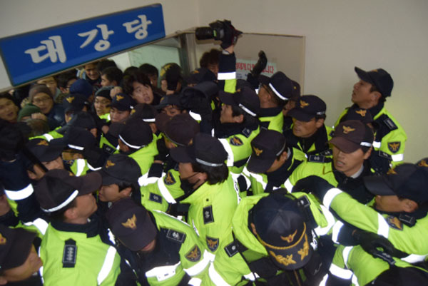 민주노총은 18일 ‘우리를 죽이려면 정권의 운명을 걸어야 할 것이다’라는 논평을 발표하고 “경찰병력이 민주노총 부산본부 건물에 난입한 것은 민주노총과 철도노조를 적으로 간주하고 말살하겠다는 것으로 받아들일 수밖에 없다”며 “민주노총이 입주한 경향신문사 건물을 포위하듯 둘러싼 경찰병력이 건물 안으로 진입하려면 박근혜 정권은 자신의 운명을 걸어야 할 것”이라고 경고했다.