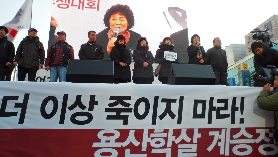 추모집회에 이어 진행된 용산 5주기 투쟁대회에서는 국가폭력에 맞선 투쟁의 의지를 다지는 한편 연대를 호소했다.
