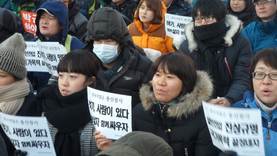 김득중 금속노조 쌍용차지부장은 “쌍용차 정리해고 후 3천명이 거리로 내앉았고, 20여명이 목숨을 끊었으며, 47억원의 손배소, 5번째 겨울을 맞았지만 연대 투쟁 동지들 때문에 투쟁할 수 있었다”고 밝혔다. 그는 이어 “재벌 권력은 구속돼도 온갖 이유로 풀려나고 있지만 노동자들은 계속 구속되는 이 현실의 중심에 박근혜가 있다”며 “정리해고와 노동탄압 분쇄를 위해, 박근혜에 맞서 더 강력하게 투쟁하는 모습을 보여드리겠다”고 밝혔다.