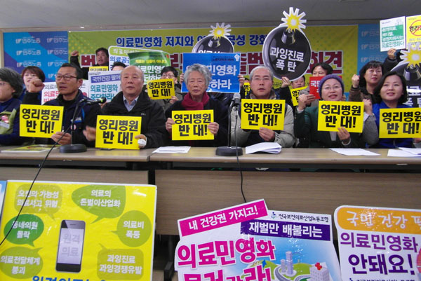 민주노총과 민중의 힘, 건강권실현을 위한 보건의료단체연합 등 100여 개의 노동, 시민사회, 보건의료 단체 등은 28일 오전 민주노총에서 기자회견을 열고 ‘의료민영화(영리화) 저지와 의료공공성 강화를 위한 범국민운동본부(준)’(의료민영화 저지 범국본)를 출범한다고 밝혔다.