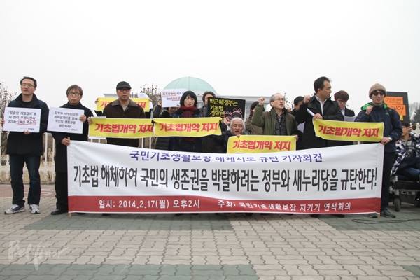 연석회의는 기자회견문을 통해 “기초법은 헌법에서 규정한 ‘인간다운 생활을 할 권리’를 우리나라 현실에서 최초로 구현한 법률”이라면서 “그러나 현 정부와 집권여당은 지난 14년간 최후의 사회안전망이자 국민 생존권의 보루로 역할을 해 왔던 기초법을 해체하려 하고 있다”라고 비판했다.