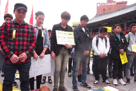 민주노총, 이주공동행동, 경기이주공대위 등 이주노동운동 단체들은 27일 서울 보신각에서 500여 명의 이주노동자, 연대 단체들과 함께 세월호 희생자들에 대한 묵념과 함께 “이주노동자 출국 후 퇴직금 수령제도 철회! 노동3권 쟁취하는 2014 이주노동자 메이데이를 진행했다.