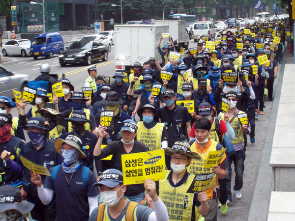 민주노총도 삼성을 상대로 한 국제적인 투쟁을 조직하겠다는 뜻을 밝혔다. 주봉희 민주노총 부위원장은 “신승철 민주노총 위원장이 독일 국제노총 회의에 참석해 삼성의 무노조 경영과 비정규직 탄압 문제를 역설했다. 국제연대를 통해 전 세계적으로 삼성에 대한 불매운동을 벌이고, 베트남, 필리핀, 중국 등 아시아에 있는 삼성 핸드폰 공장 노동자들과 연대 투쟁에 나설 것을 제안했다”며 “삼성이 사과하고 재발방지를 약속할 때까지 민주노총은 금속노조와 함께 선두에서 싸우겠다”고 설명했다.