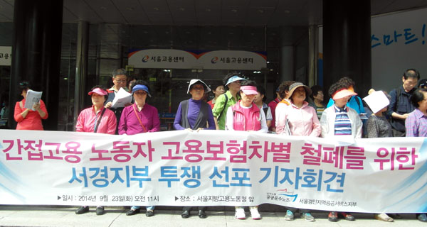 공공운수노조 서경지부는 23일 오전 11시, 서울고용노동청 앞에서 기자회견을 열고 “우리나라 대부분의 고령노동자가 간접고용으로 채용되고 있는 점을 감안할 때 고용보험법 제10조 제1항의 개정은 거의 유명무실 한 것임이 드러났다”고 비판했다.
