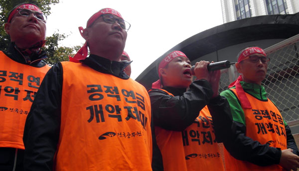 이충재 공무원노조 위원장은 “전문가들도 문제가 많다고 지적한 한국연금학회의 공무원연금 개악안이 공무원들의 저지로 무산됐다. 하지만 안행부는 이미 죽은 시체나 다름없는 연금학회 안을 다시 꺼내 화장만 바꿔 내 놓았다”며 “공무원노조는 정부안을 절대 받아들일 수 없다. 반드시 저지하겠다”고 목소리를 높였다.