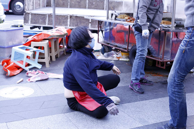 강남대로 또 다시 아수라장...강남 노점상 분신 시도까지, 노점상 오열