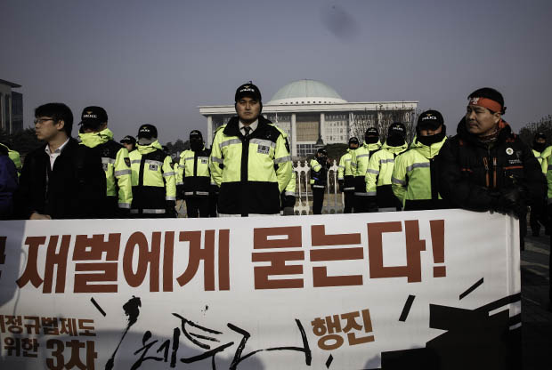 이에 따라 3차 행진 첫 날은 국회 앞에서 ‘비정규법제도 전면폐기’ 행진 1팀 600여 명과 목동 스타플렉스 앞에서 ‘정리해고 법제도 전면폐기’ 행진 2팀 100여 명이 출발해 전경련 회관 앞에서 만날 계획이었다.