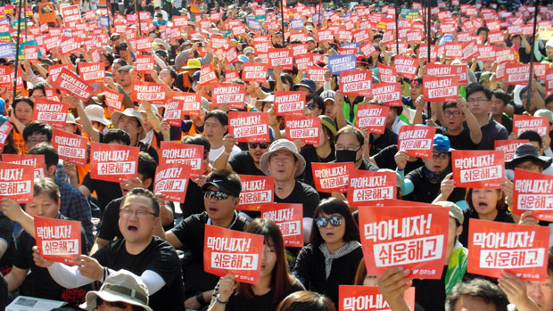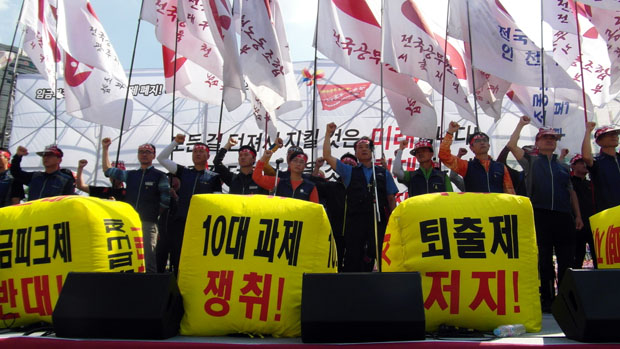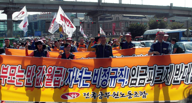 지난 5월 정부가 공무원연금법을 개악한데 이어, 공무원을 상대로 한 임금피크제와 성과급제에 따른 퇴출제 도입 등을 강행하면서 공무원들의 반발도 확산되고 있다. 이날 오후 1시에는 전국공무원노동조합이 서울역에서 ‘총력투쟁 선포대회’를 열고 정부의 노동개악 저지 투쟁을 결의했다.