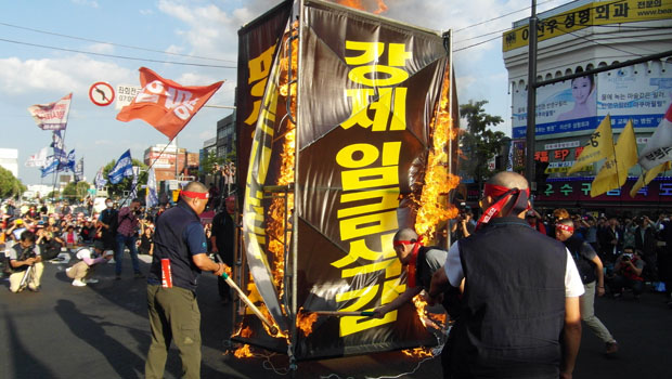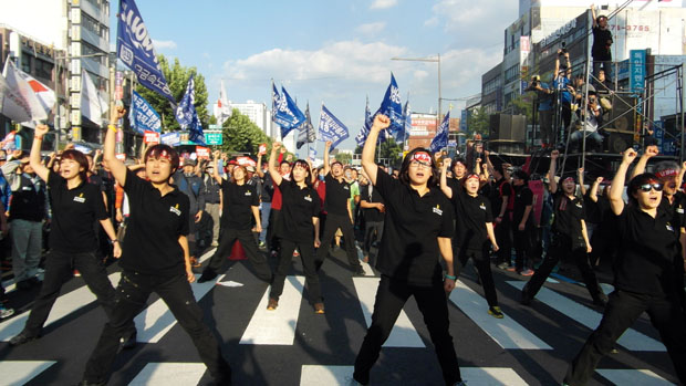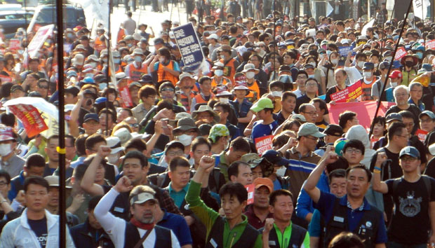 민주노총은 19일 오후 3시 서울 청계 한빛광장에서 열린 ‘민주노총 총파업 선포 결의대회’에서, 오는 23일 총파업에 돌입한 뒤 서울로 상경해 대정부 투쟁에 돌입하겠다고 밝혔다. 정부가 쉬운해고, 평생 비정규직을 위한 노동개악을 밀어붙이고 있는 만큼, 총파업을 포함한 강력한 투쟁이 불가피하다는 판단 때문이다. 참가자들은 집회 후 도심 행진 과정에서 도로 점거 시위를 벌이기도 했다.