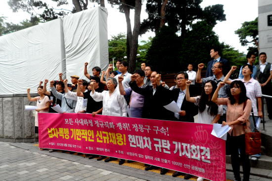 3000명 신규채용안에 대해 회사는 “특히 불법파견 논란을 마무리하고 동시에 고용 유연성을 확보하는 계기를 마련하게 됐다”고 밝혔습니다. 사내하청 노동자들을 현행 근로자파견법을 피해 아무 때나 쓰고 버릴 수 있는 노동자들로 사용하겠다는 뜻입니다.